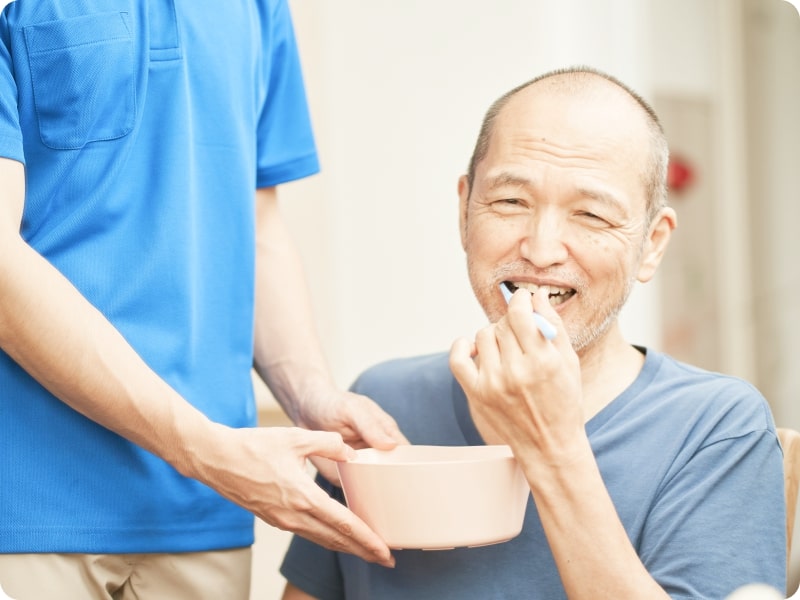 口腔(こうくう)とは単純に言うと、口の中です。つまり『お口のお手入れ』こそ口腔ケアなのです。最近この口腔ケアが注目されています。これは、東北大医学部の佐々木名誉教授らが、誤嚥性肺炎の発症と口腔衛生状態との関連を示唆してからであります。歯科診療所を訪れる患者に対する口腔衛生指導は、歯周病(いわゆる歯槽膿漏)の予防の観点から重要視されています。しかし、在宅高齢者や無歯顎者(歯が無くなってしまった人)に対してはさほど注目されていませんでした。しかし、佐々木教授らは『口の中は肺の入口であるのだから、そこが不潔であれば肺炎の可能性が増す』と指摘したのです。
